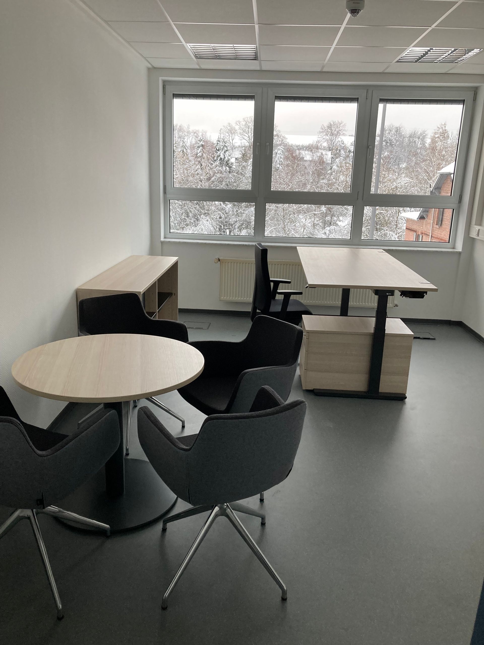 Der Auftraggeber hat endschieden alles neu zu machen. Wir haben Büros, Konferenzraum, Sozialräume, Küchen, Umkleideräume und Lager eingerichtet.
