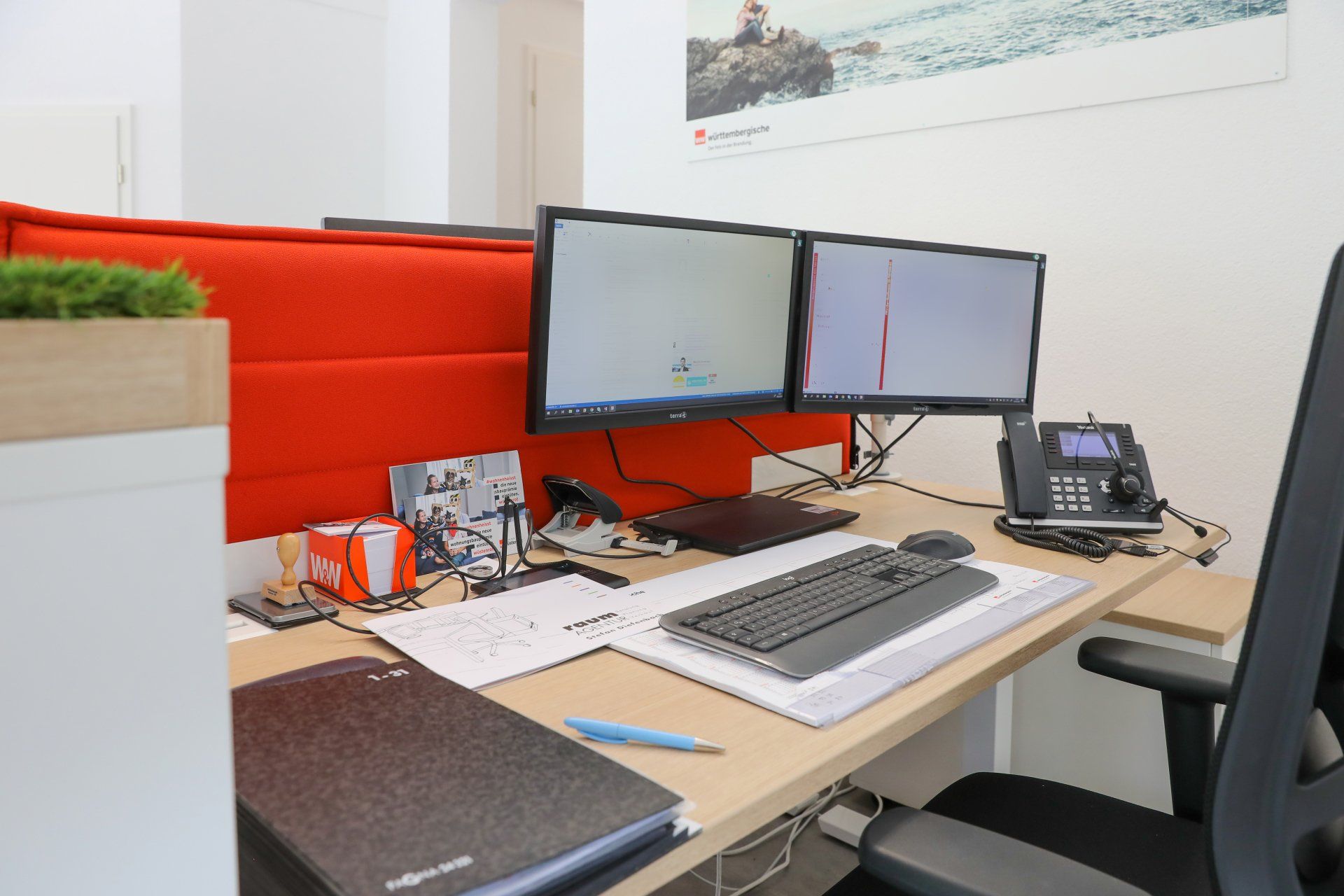 Die Wüstenrot & Württembergische Generalagentur von David Merdan hat das Farbkonzept orangerot-grau mit Eiche Lorka Holzelementen getreu der Unternehmens CI überzeugt. Mitarbeiter und Kunden fühlen sich in diesem Umfeld gleichermaßen wohl. Das Konzept der Büroausstattung stammt von der Raumagentur Diefenbach, die Möbel hat der Traditionshersteller Febrü mit Hauptsitz in Herford geliefert.